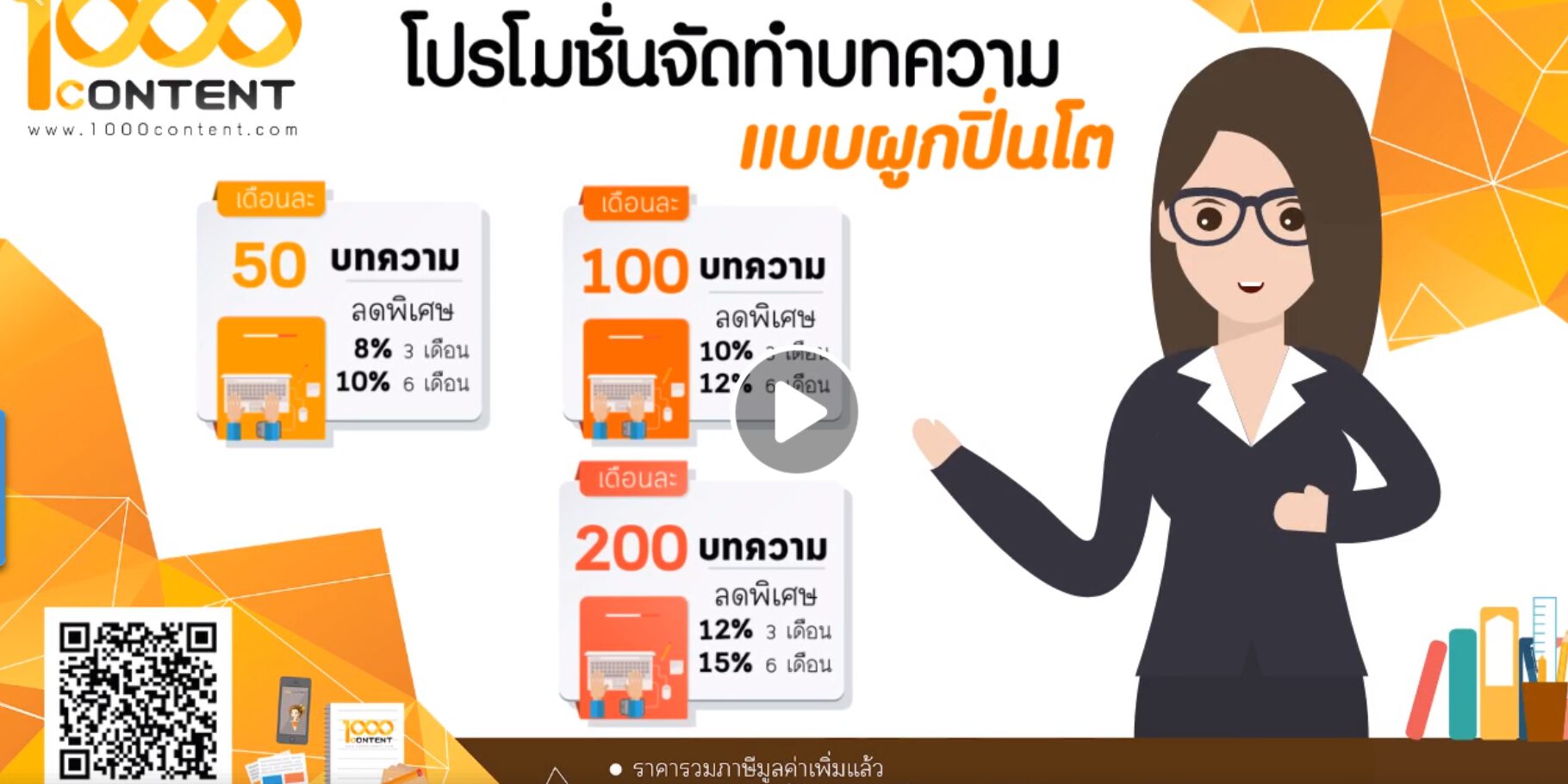 สำหรับลูกค้าที่ต้องการสั่งจ้างเขียนบทความแบบรายเดือนกับหนึ่งพันคอนเท้น